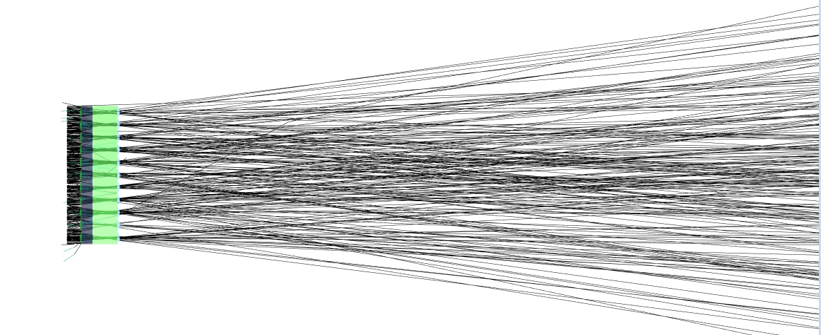 启用非序列追迹模式,模拟光线在阵列间的反射、折射及能量损耗,通过 100 万条蒙特卡罗光线采样,获取投影面照度分布数据。利用照度探测器工具直观呈现光斑均匀性,定位因透镜边缘散射导致的暗区问题,为结构优化提供数据支撑。