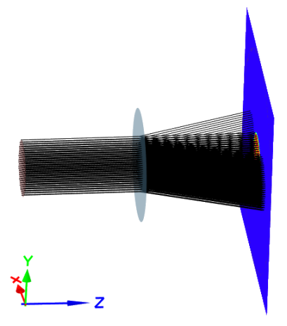 在 Z 轴坐标为 2mm 的位置(Z=2mm)搭建核心光学元件 ——光栅。光栅孔径设置尺寸为 1mm,孔径形状采用圆形(默认标准形状,可根据实际需求调整为矩形或其他异形结构),确保光栅的有效通光区域符合仿真场景需求;