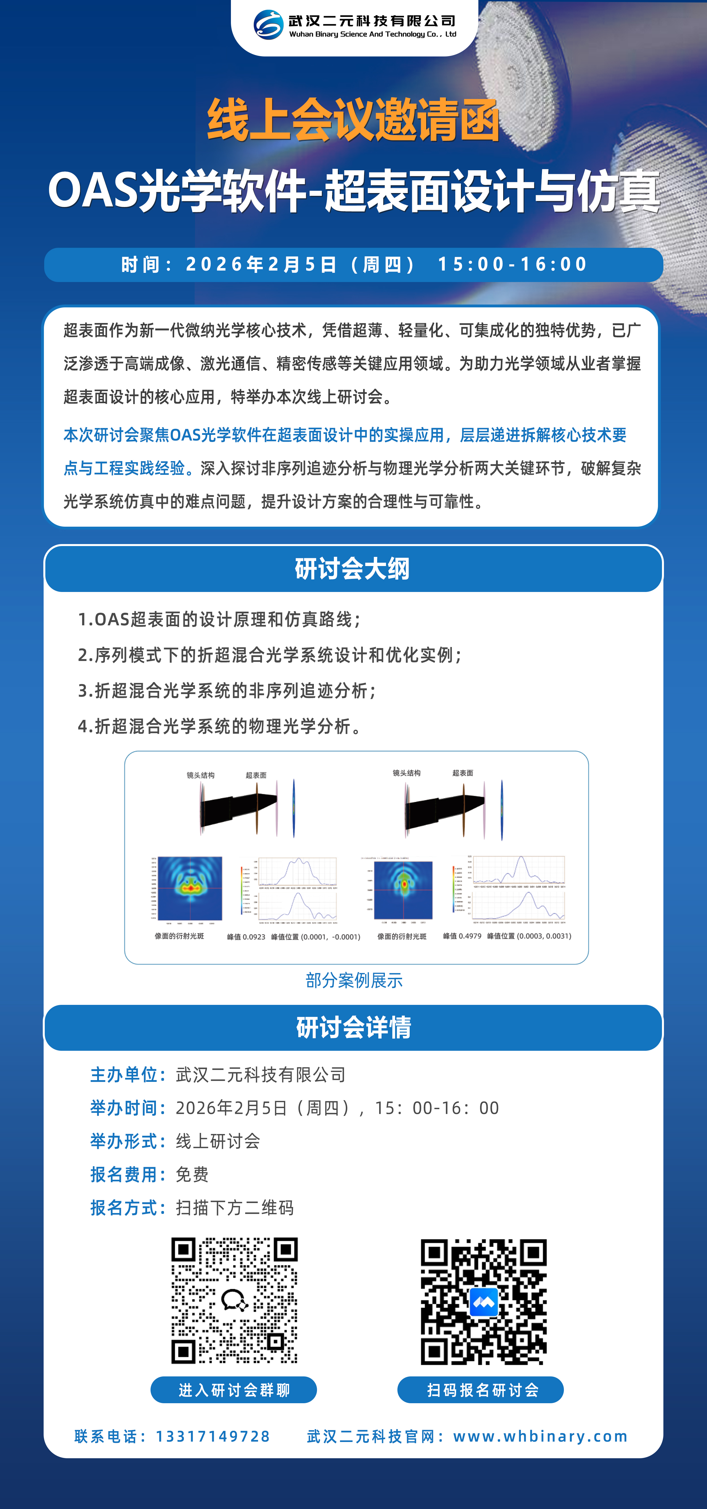 线上研讨会 | OAS光学软件超表面设计与仿真