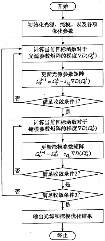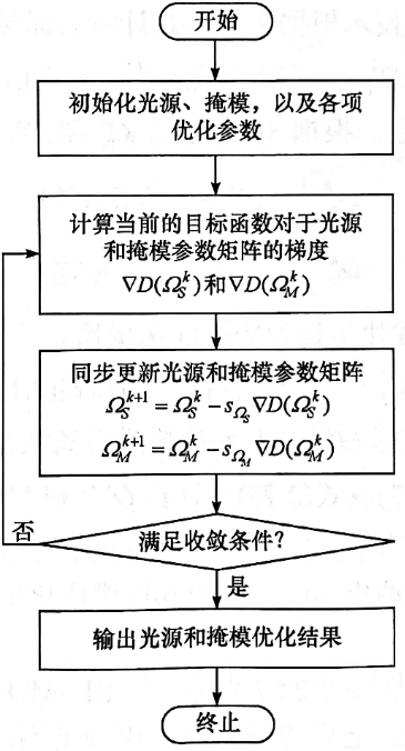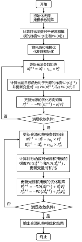 • 目标函数梯度:目标函数对光源、掩模参数矩阵的梯度,由“像质评价函数梯度”与“各罚函数梯度”加权组合而成,是参数更新的核心依据;